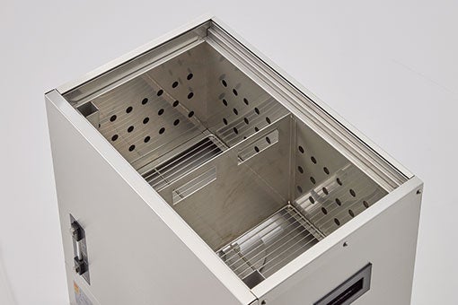 少ない消費電力でも高い断熱性と庫内構造により、効率よくホットタオルの生産が可能。外装部も熱くなりにくい安全設計です。