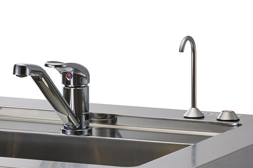・シンクの水栓金具を固定式から首振り仕様に変更。作業性と操作性が向上。