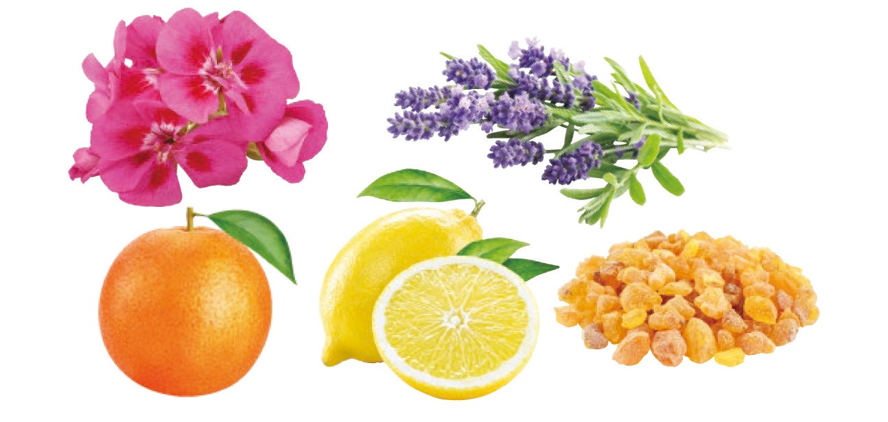 ゼラニウム・ラベンダー油・オレンジ果皮油・レモン果皮油・フランキンセンス の5種のボタニカルをブレンドしたブリージングアロマで、深呼吸したくなるようなリラックスしたひとときを。