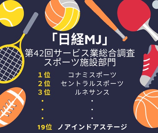インドアテニススクールを全国に35校展開する業界大手のノアインドアステージ株式会社(代表取締役社長:大西雅之、本社:姫路市東山524)は、日本経済新聞社が発行している流通・生活・サービス業などのマーケティング情報に特化した専門紙「 日経MJ 」にて、第42回サービス業調査(売上高ランキング) スポーツ施設部門において、全国19位(売上高前年対比8.9%の伸び率)にランクインしました。
