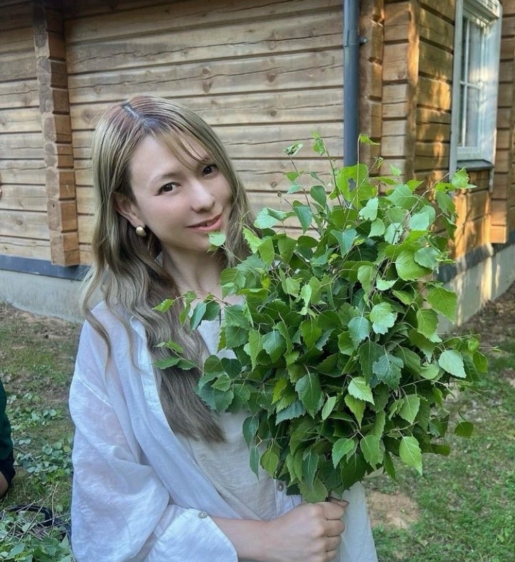 ウィスキングマイスター「武内祐美」さんによる植物の枝を使用したリズミカルな全身マッサージで深い癒しを提供。