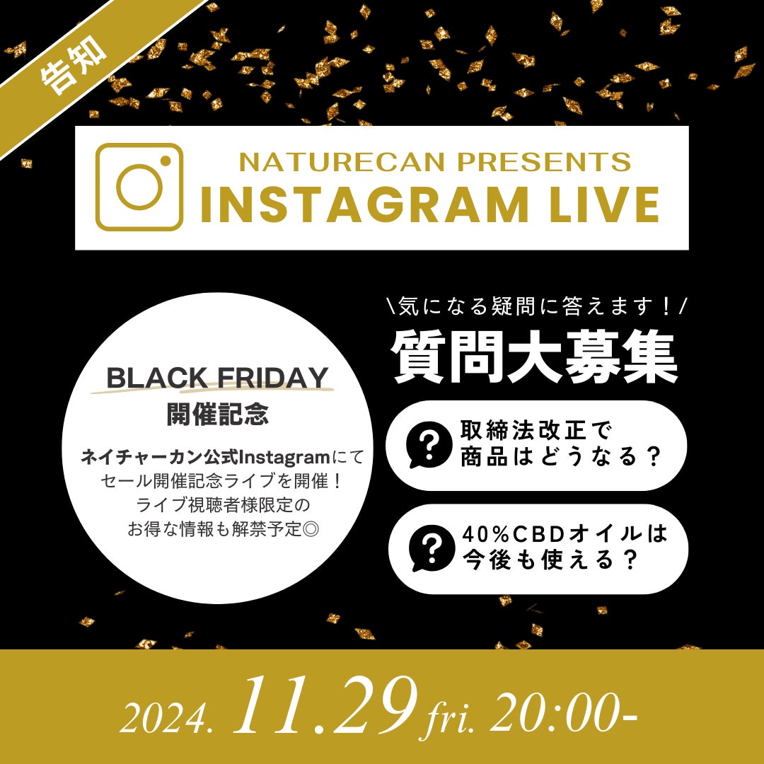 【11/29(金)20:00〜】ブラックフライデー当日にはインスタライブを実施。今後が気になるCBDについて、皆様からの質問を募集中!
