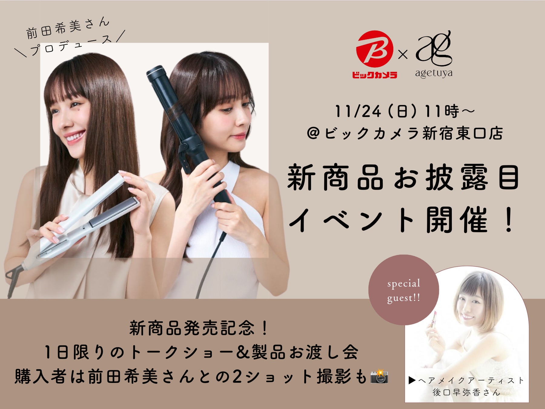 ヘアアイロンブランド「agetuya(アゲツヤ)」を展開する株式会社ローネジャパンは、モデル・タレントとして活動する前田希美さんとのコラボ製品である「URUシリーズ」ヘアアイロン発売を記念し、ビックカメラ新宿東口店にて、お披露目イベントを開催する運びとなりました。当日は前田希美さんに加え、ヘアメイクアーティストの後口早弥香さんも登壇し、トークやスタイリングの実演を通して、時短でうるつや髪が叶う新商品「URUシリーズ」の魅力についてご紹介いたします。また、購入特典として前田希美さんからの製品のお渡しと2ショット撮影も実施予定です。