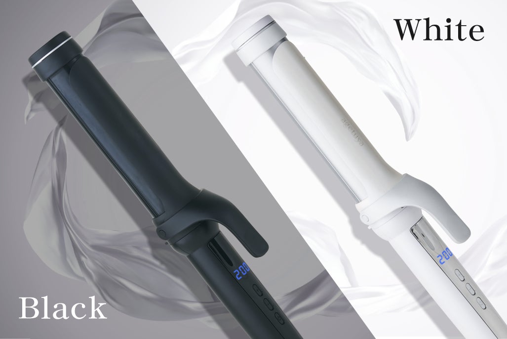 ※左写真:「agetuya URU ストレート&カールヘアアイロン(ブラック/ホワイト)」、右写真:「agetuya URU カールヘアアイロン38mm(ブラック/ホワイト)」