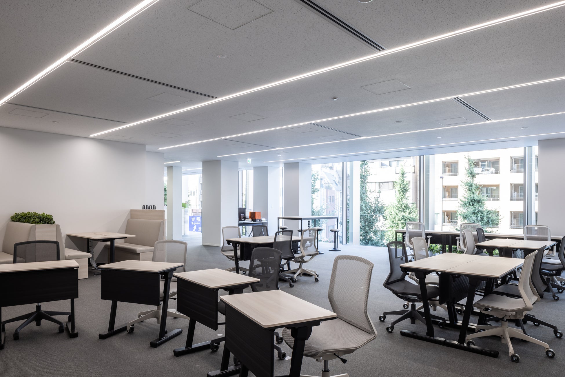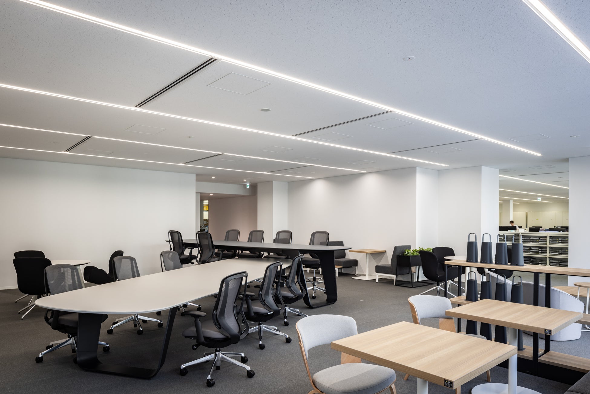 2~4階の増設されたオフィスフロアでは、「イノベーションを生み出すオフィス空間の創出」を基本コンセプトに、働く人が気分転換したいときや、心地よく働きたいときに使えるエリア、チームでアクティブに働くときやじっくり話したいときなど集い語り合う場面に最適なエリアを設置しました。