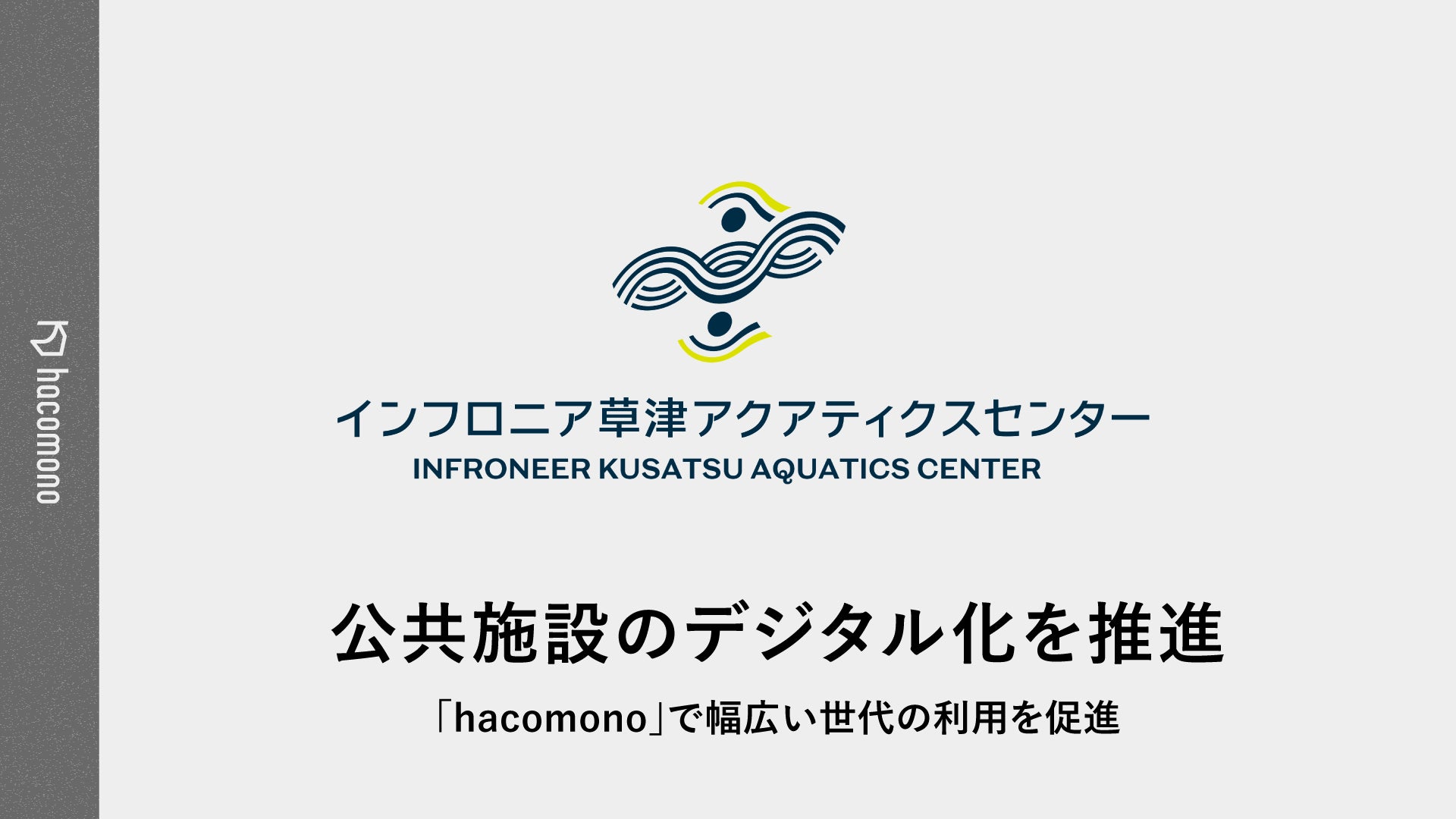 株式会社hacomono(東京都渋谷区:代表取締役CEO 蓮田 健一 以下、hacomono)が提供するウェルネス/運動施設向けオールインワン・マネジメントシステム「hacomono」が、株式会社ビバ(本社 京都市上京区:代表取締役社長 小森 敏史)が運営統括責任者を務める「インフロニア草津アクアティクスセンター」の運用システムとして採用されたことをお知らせいたします。