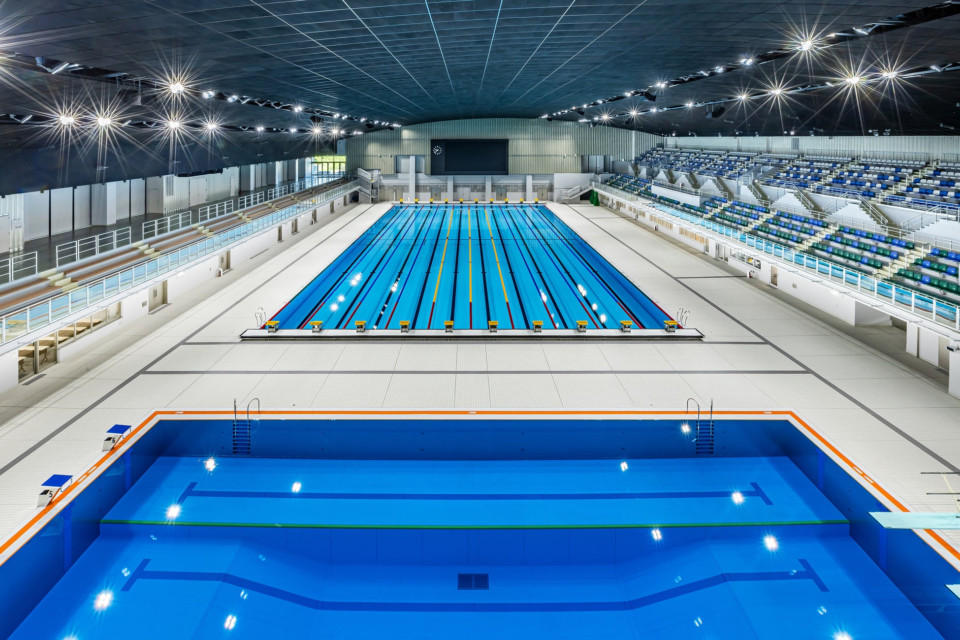 2024年8月にオープンした総合スポーツ施設です。通年利用できる50mと25mのプールや飛込プール、トレーニングルーム、レッスンスタジオ、会議室などを備えています。50mプールは床や壁を動かすことで4分割にしたり、0〜3mで水深も変えられる全国初の設備を導入。新たな水泳競技の拠点として世界で活躍するトップスイマーの輩出が期待されています。2025年に開催される「第79回国民スポーツ大会・第24回全国障害者スポーツ大会 」(愛称:わたSHIGA輝く国スポ・障スポ)の水泳競技会場にも指定されています。