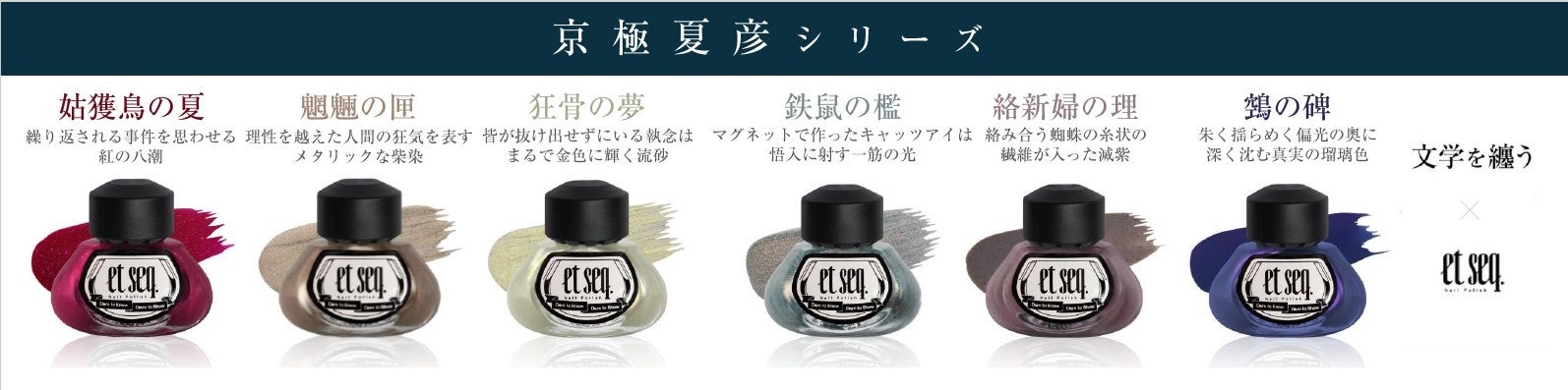 ブランド名の「et seq.」(エ セク)とは、英文文書でよく使われる「以下参照」の略称。羽根ペンをかたどったブラシ、インク瓶のようなボトルなどの印象的なデザインには、「数々の名文を書き記した道具を通してアイデンティティを探そう。過去の文学から「参照」して、色を端書きに変える。自分の姿を知って、自分の色と共鳴し合おう。」というコンセプトが込められています。