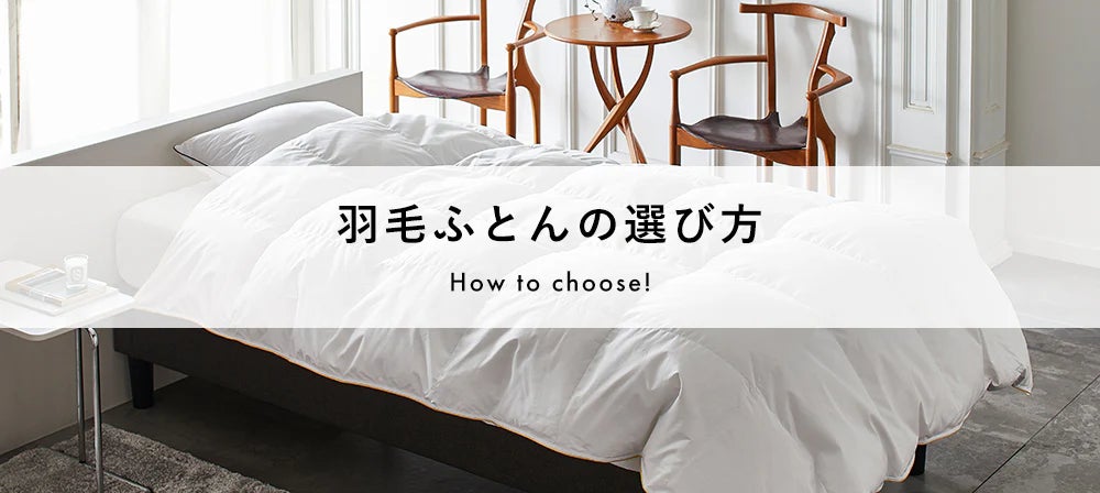 自分に合った羽毛ふとんの選び方をわかりやすく解説する「羽毛ふとんの選び方」の特集ページを