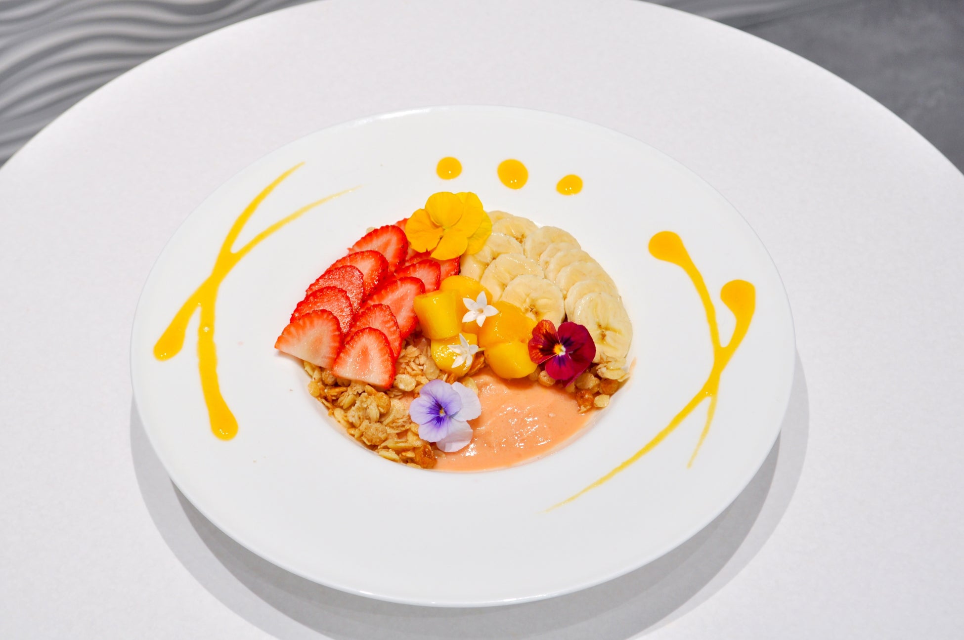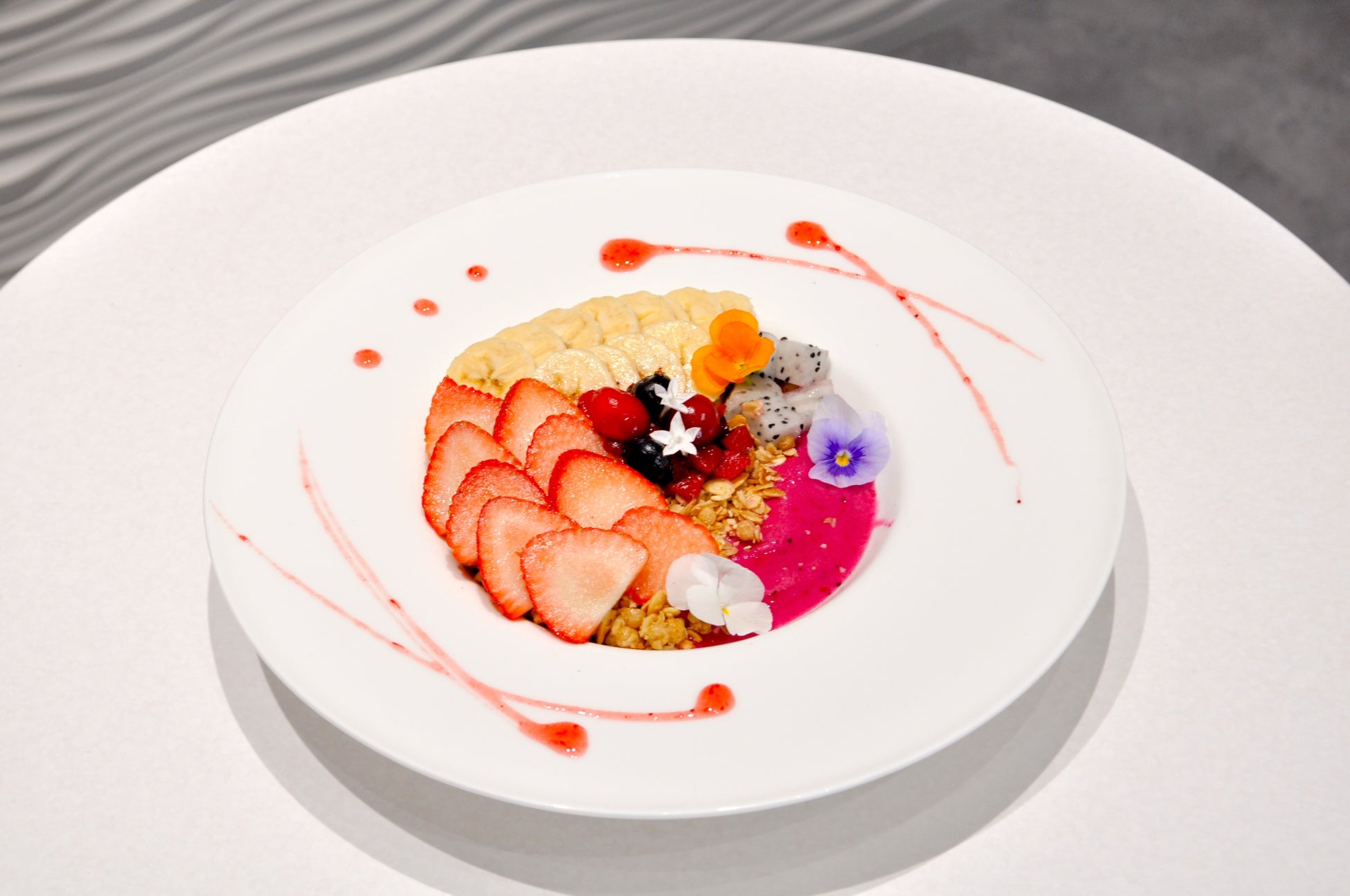 栄養豊富なアサイーをベースに、ビタミン・ミネラルなどの栄養を豊富に含んだ様々なフルーツをふんだんに使用し、色とりどりの果物で美味しく、美しく、美と健康を考えた1品です。また、DRESSY CAFEらしくエディブルフラワーがトッピングされ、見た目も華やかでお楽しみいただけます。