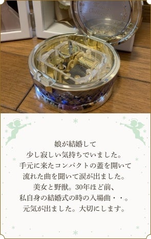 ※オルゴールの曲は「いつも何度でも(千と千尋の神隠し)」を予定しております。変更の場合もございますので、ご了承ください。