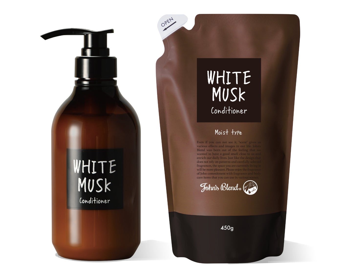ジョンズブレンド自慢のホワイトムスクの香りをたっぷりと配合した”フレグランス”シャンプー&コンディショナーで、毎日のヘアケア習慣をいつまでも心地よく。