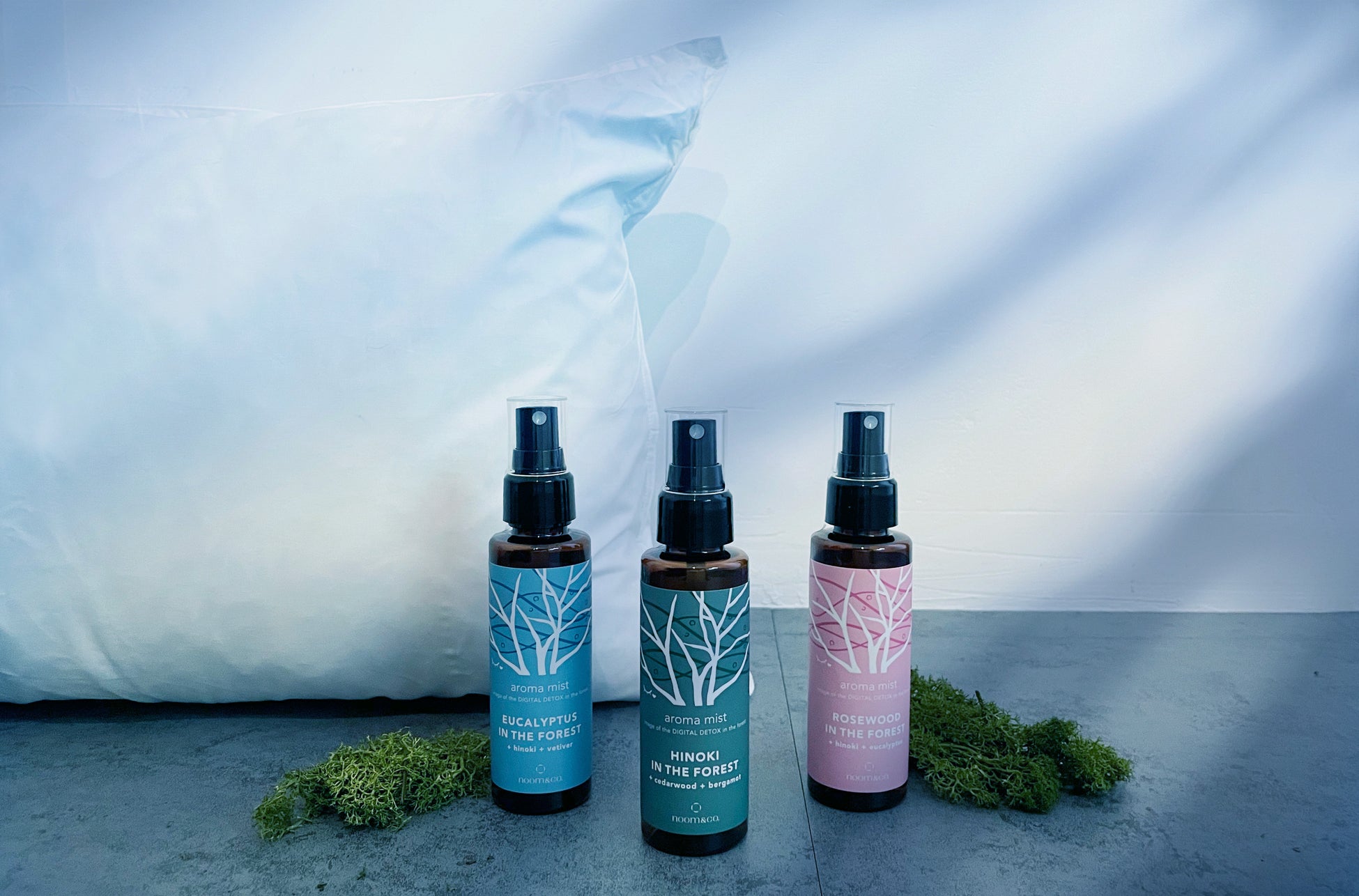 枕に、お部屋に、お洋服に、いつでもどこでも森林浴体験を!ストレスや睡眠において研究された香り成分&消臭成分配合の「森林浴睡眠ミストシリーズ」です。
