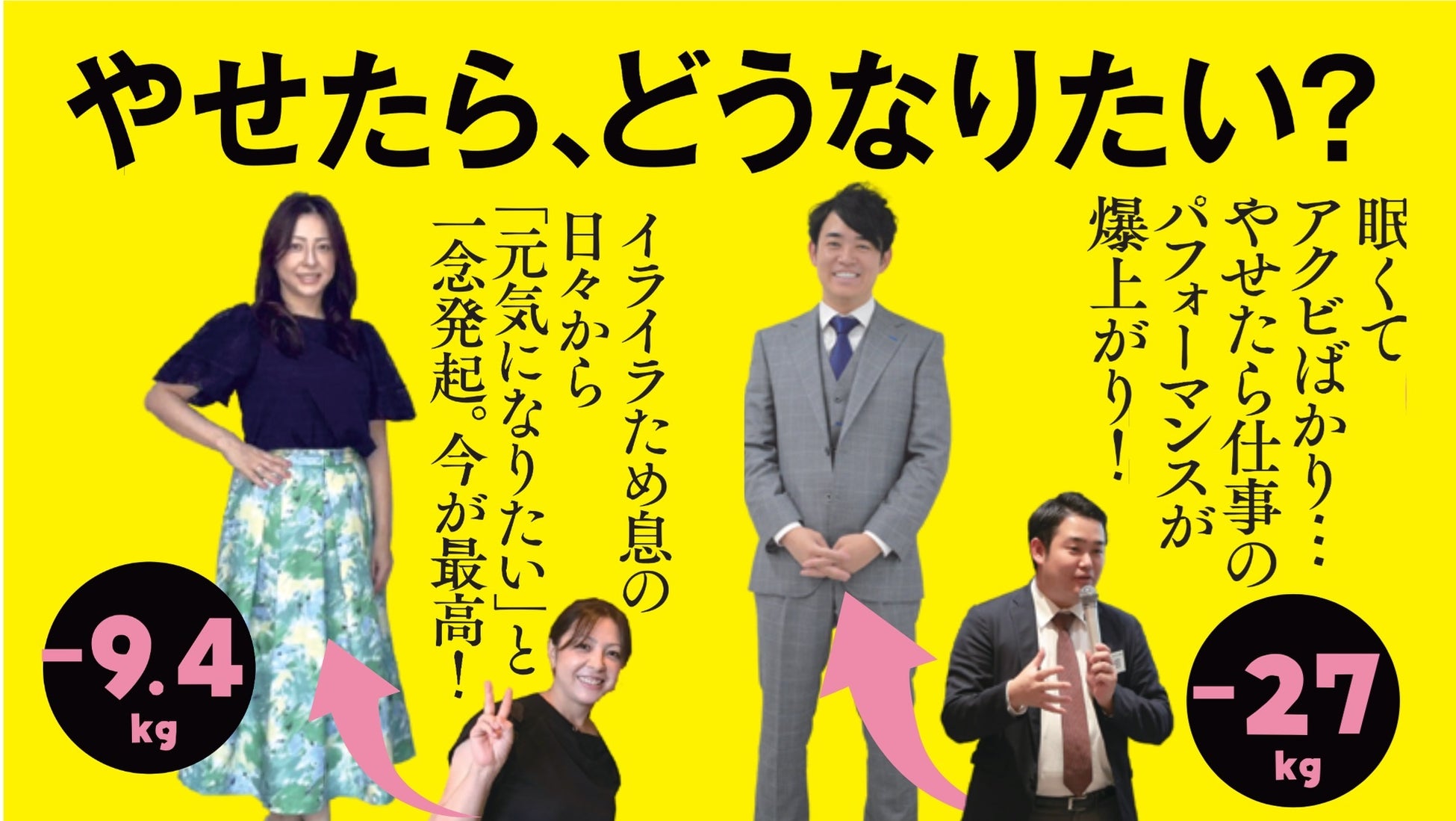 ●「太っている時期は、人に見られるのが恥ずかしい・・・という気持ちがありました。でもやせだしたら、休日によく外出したり、洋服を買ったりするようになり、自分を見るたびに気持ちがあがります!」(36歳 10か月で-27kg 男性)