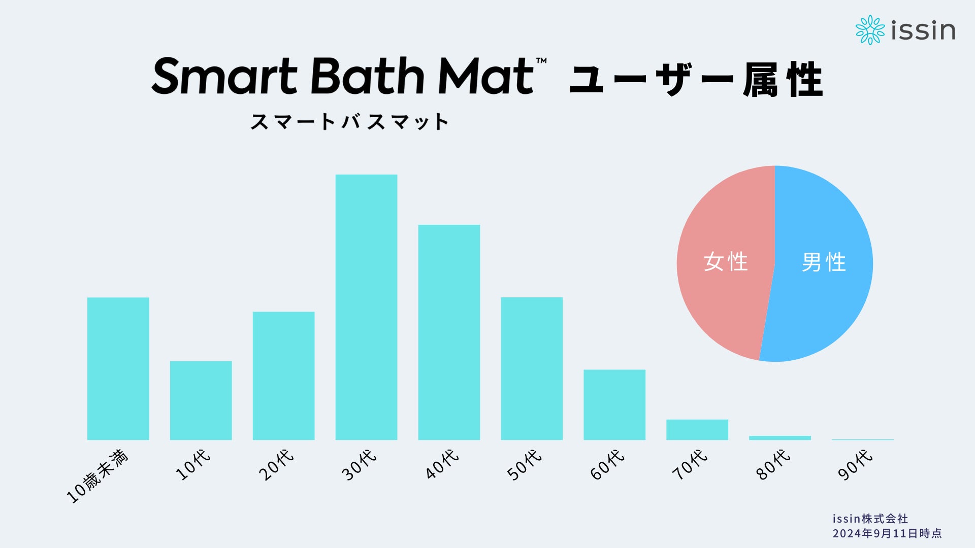 家族のカラダとココロの健康維持・増進をテクノロジーで実現する、東京大学発ヘルスケアスタートアップのissin株式会社(本社:東京都文京区 代表取締役:程 涛、読み:イッシン、以下「issin」)が提供する、体重測定できるバスマット「スマートバスマット」は、ユーザー数が年間3倍のペースで成長し、60,000人を突破しました。また、取り扱い店舗数も急増し、昨年の7倍以上となる2,500店舗以上に拡大しています。