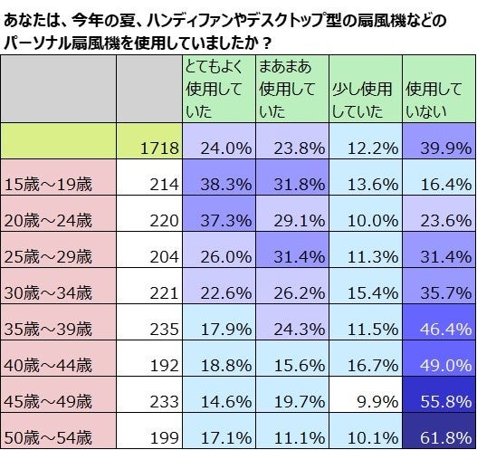 ② この夏のハンディファンの使用者は約6割。10代後半から20代前半は約8割。
