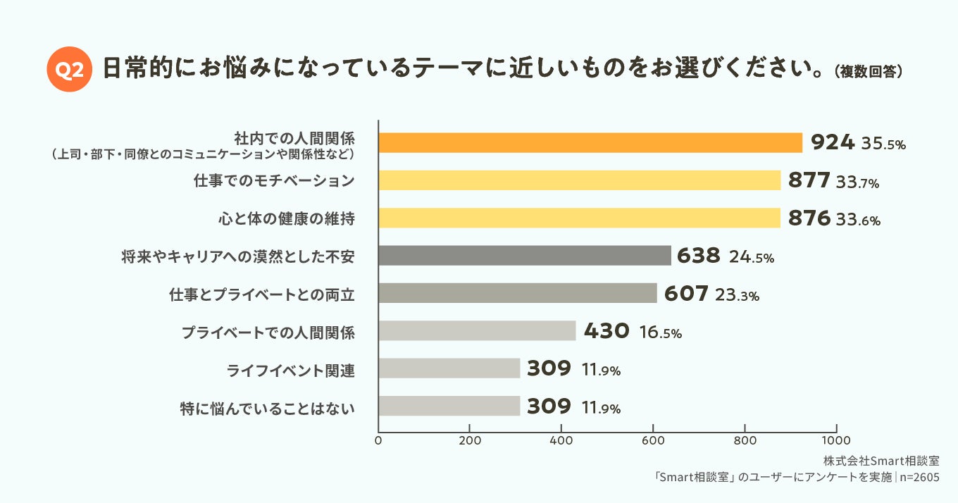 法人向けオンライン対人支援プラットフォーム「Smart相談室」のユーザー2605名にアンケートを実施