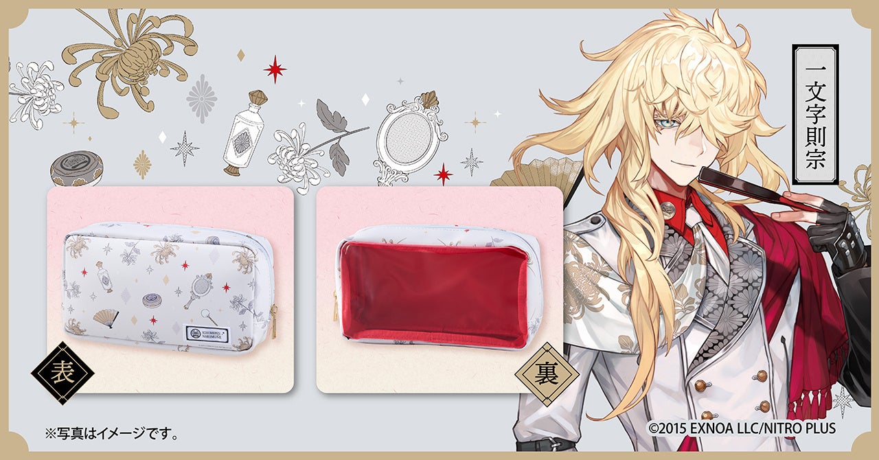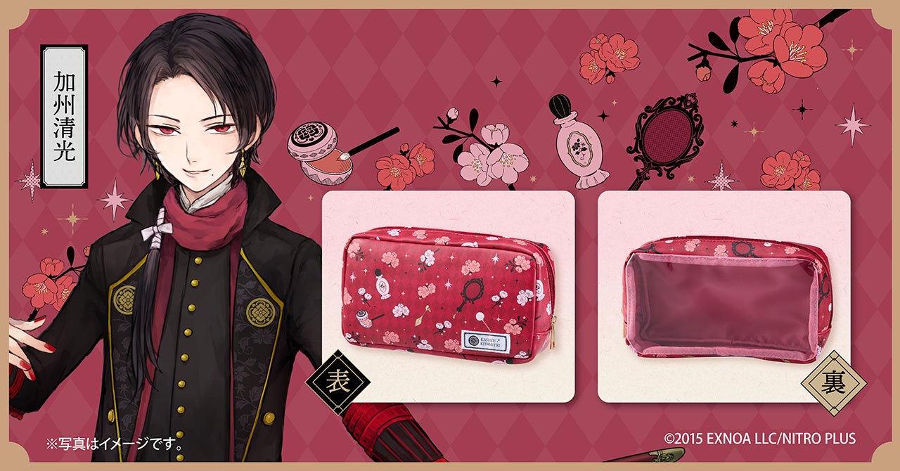 刀剣乱舞ONLINEの刀剣男士をイメージしたコラボ商品3種が数量限定で登場です。初めてのコラボとなる今回のラインナップは、京極正宗、加州清光、一文字則宗の3振りの刀剣男士たち。彼らをイメージしたオリジナルデザインポーチと菊正宗の人気化粧水がセットになりました。