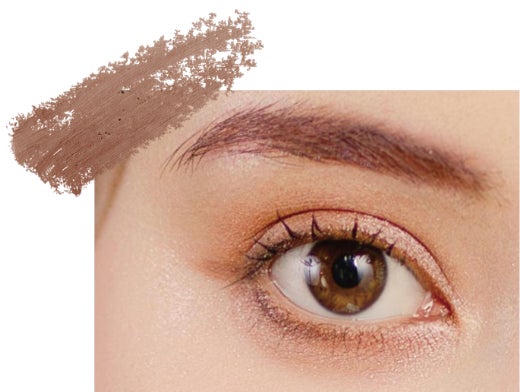 眉だけでなく目元にも使用して、統一感のあるメイクが完成