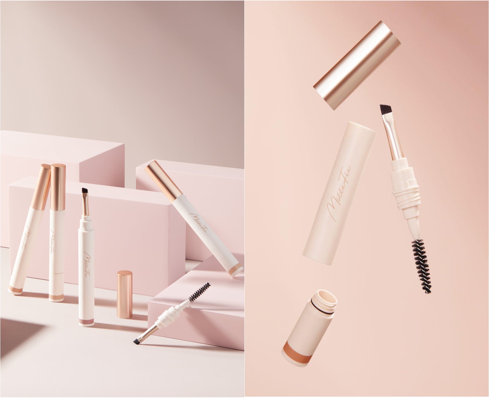 筆、スクリューブラシ、ムースが一体となっている計算されたスマートな容器です。