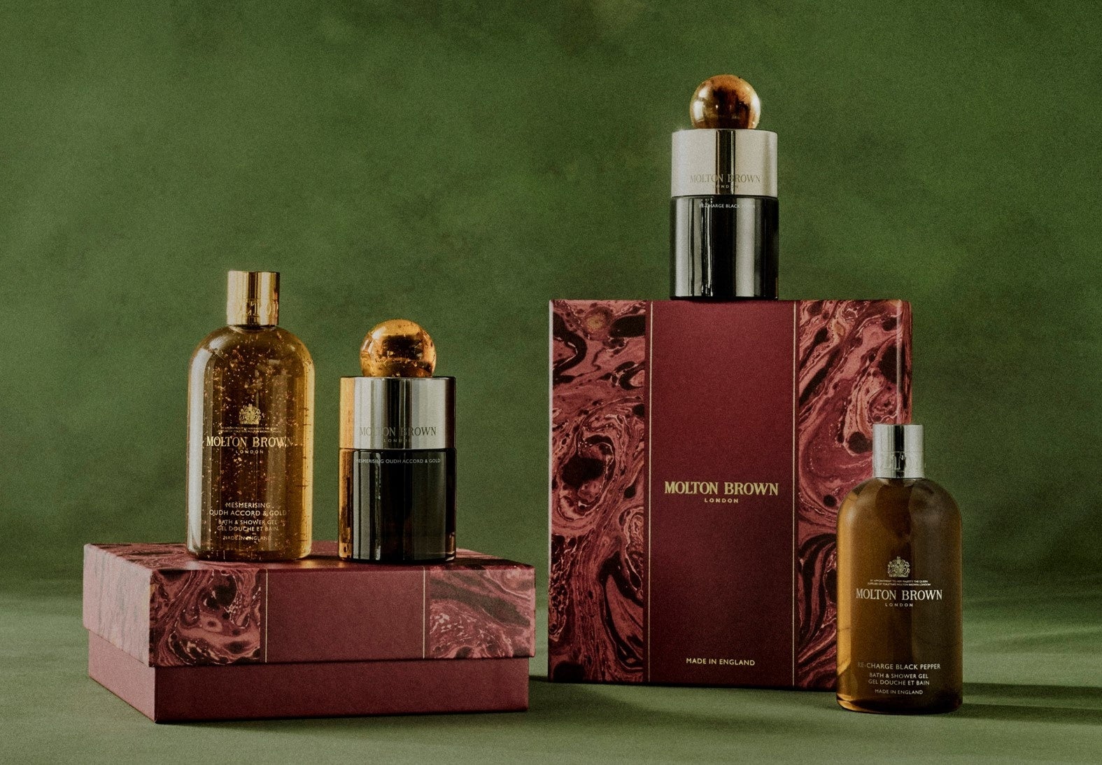 美しいマーブル模様を配した限定デザインや、新年のカウントダウンを一緒に過ごすときに香る、記憶に残るようなオードパルファンに至るまで、モルトンブラウンのホリデイコレクションで、一生消えることのない思い出に彩りを添えませんか。
