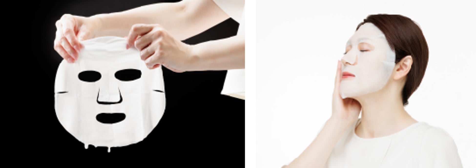 美容乳液をたっぷり含んだなめらかな肌触りのマスクが肌にぴたっと密着