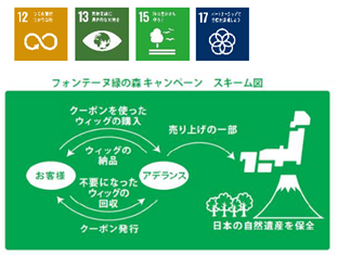 当社は、2009年から「フォンテーヌ 緑の森キャンペーン」(現:フォンテーヌ サンクスウィッグ キャンペーン16th 未来につなげる緑の森プロジェクト)として、お客様がご使用後、使われなくなったウィッグの回収と環境保全をリンクさせるエコサイクルを実施しており、今までに回収したウィッグは10万枚以上になります。この活動の一環として2019年から、新たに静岡県立森林公園のアカマツ林の再生活動が加わりました。