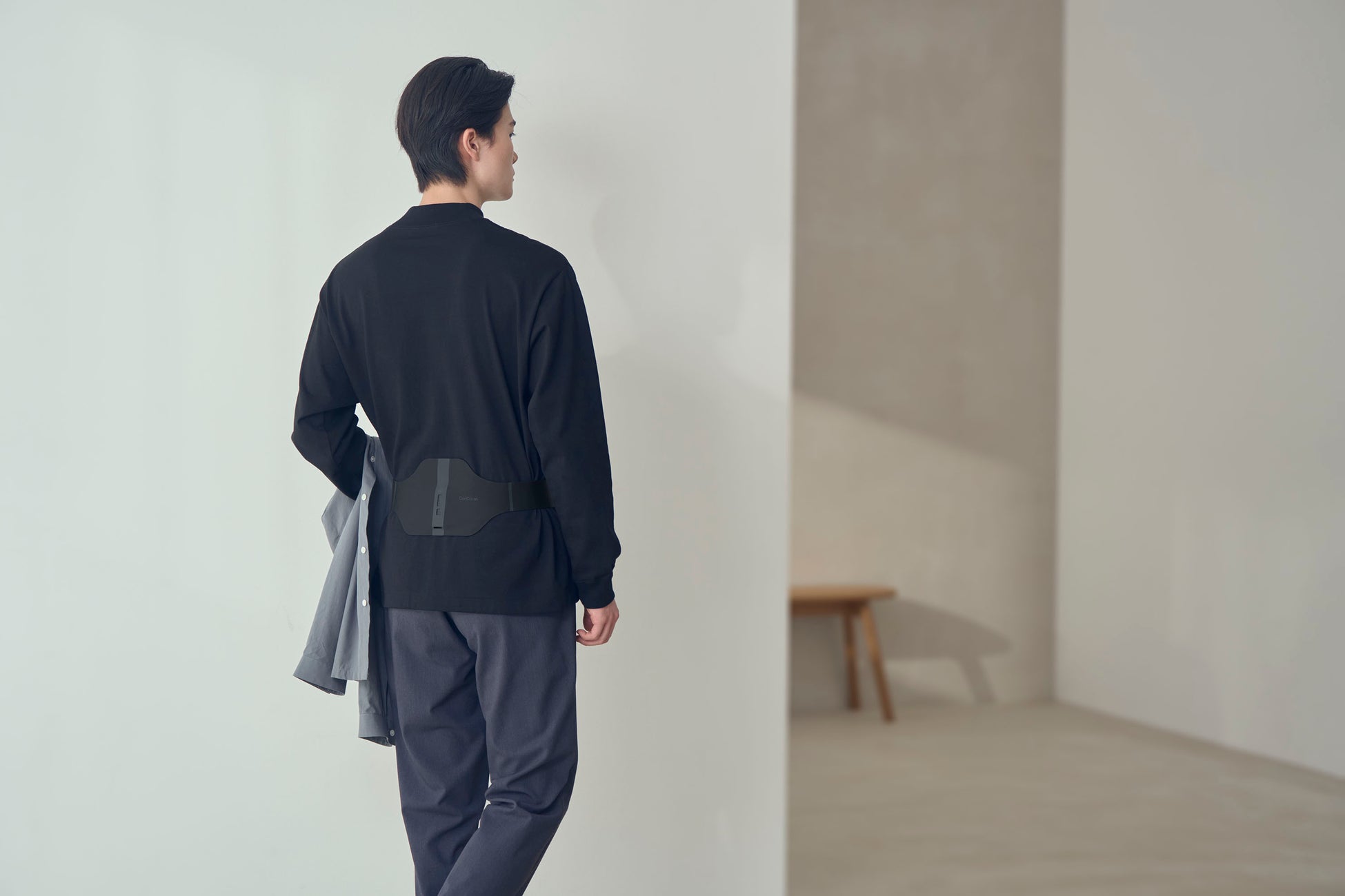 本体は最大で約8mm、腰アタッチメントは約5mmと薄く、目立たず装着が可能です。
