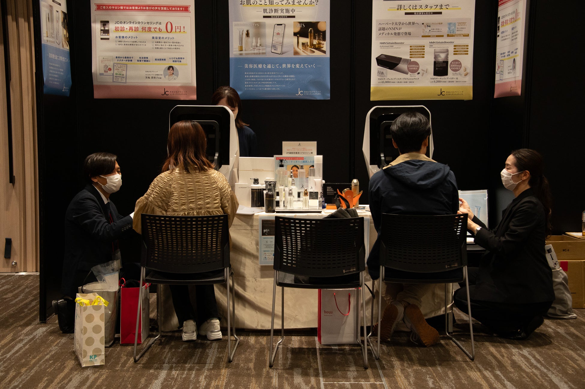 会場には、様々な美容情報を入手できるブースが出展。AI技術を活用してカウンセリング時間を短縮するスマートデバイスミラーや、AI肌診断を行い最適なケアアドバイスを行う機械、フェムテックを取り入れたボディケアアイテムやメンズコスメ、最新頭皮ケア機器など、最新技術とトレンドを取り入れた進化を続ける美容商材やサービスが揃いました。