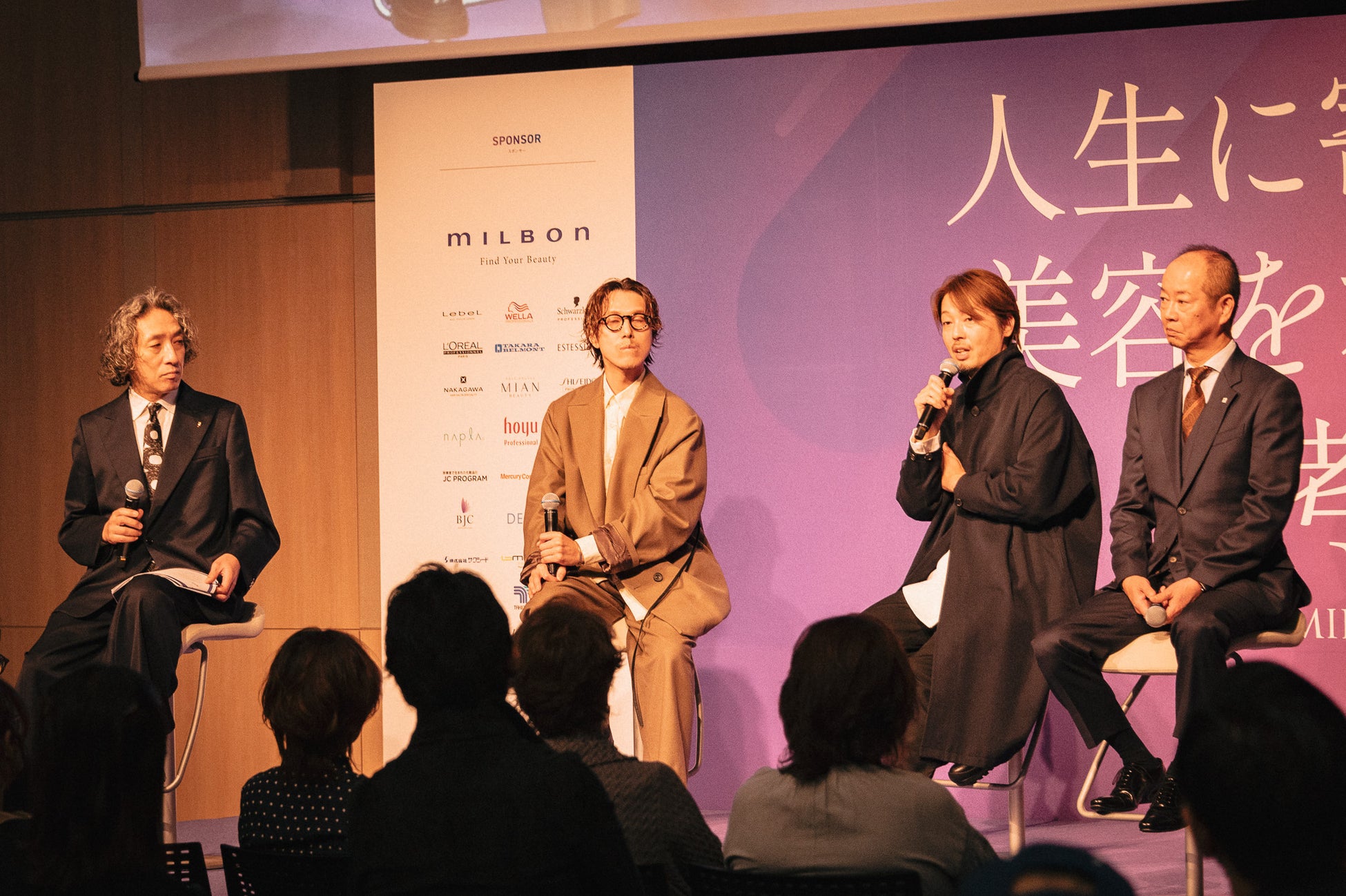 これからの美容室経営がどう変わるのかについて、南さんは「技術者の年齢やキャリアは関係なくなっていく。個性やコンセプト[自分がどうしたいのか]を持たないと淘汰されていく時代。これからはより各店舗の良さに向き合っていくことが重要。」と語られました。「今後美容品は贅沢品になる。AIや人工知能が発達していく今後、人間の身体の一部を借りて心に寄り添うことができる職業は医療と美容しかない。その中でやはり料金や社会的地位を上げていく必要がある。ディーラー、メーカー含め業界全体で取り組んでいけたら。」と大倉さんの熱いメッセージが送られました。橋本からはお客様を幸せにできる商品やメニューが会場に多く集まっていることに触れ、「明日のサロンワークにつなげていただきたい」という言葉で締めくくられました。