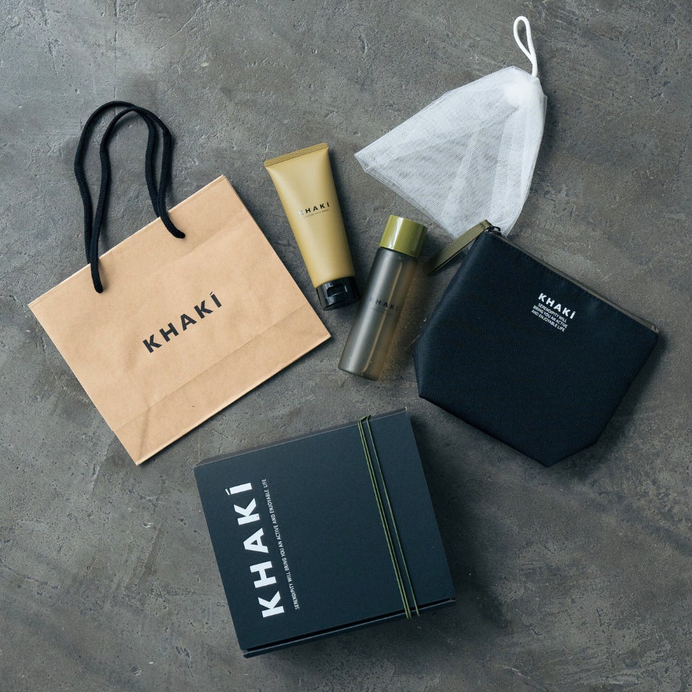 さらに、KHAKI SPECIAL COFFRETはオリジナルポーチや泡立て洗顔ネットなどもセットに含まれており、長く愛用できる「モノ」を一緒に贈ることができます。