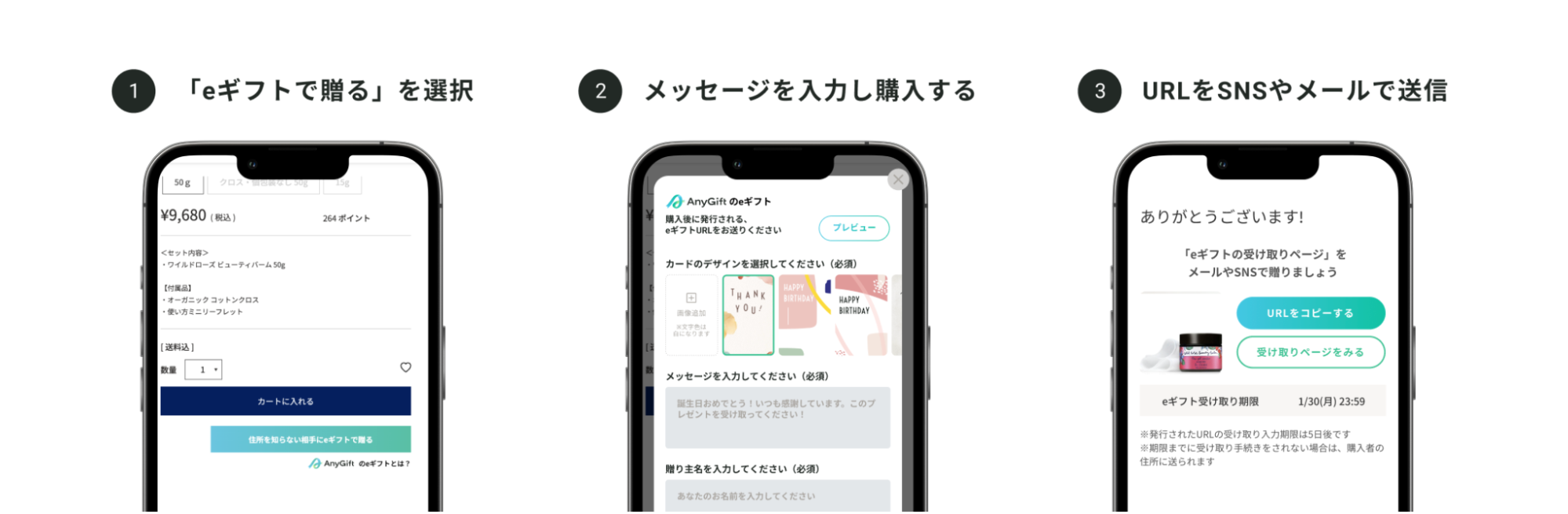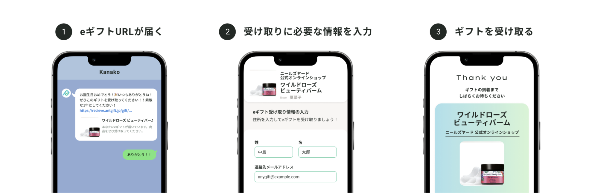 eギフトURLから住所を入力いただくだけで対象商品が届きます
