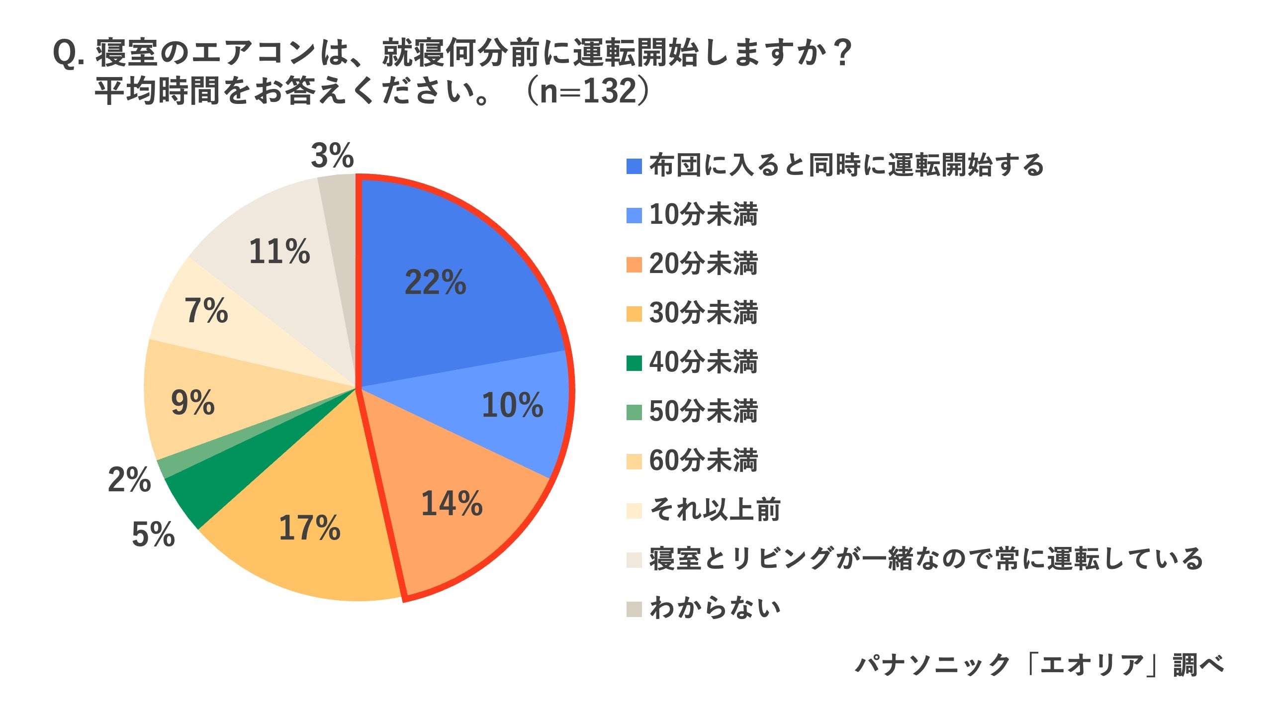 調査では、46%が布団に入ると同時〜20分未満に運転を開始すると回答。20分未満の方は「20分から30分前」を意識してみると良いでしょう。