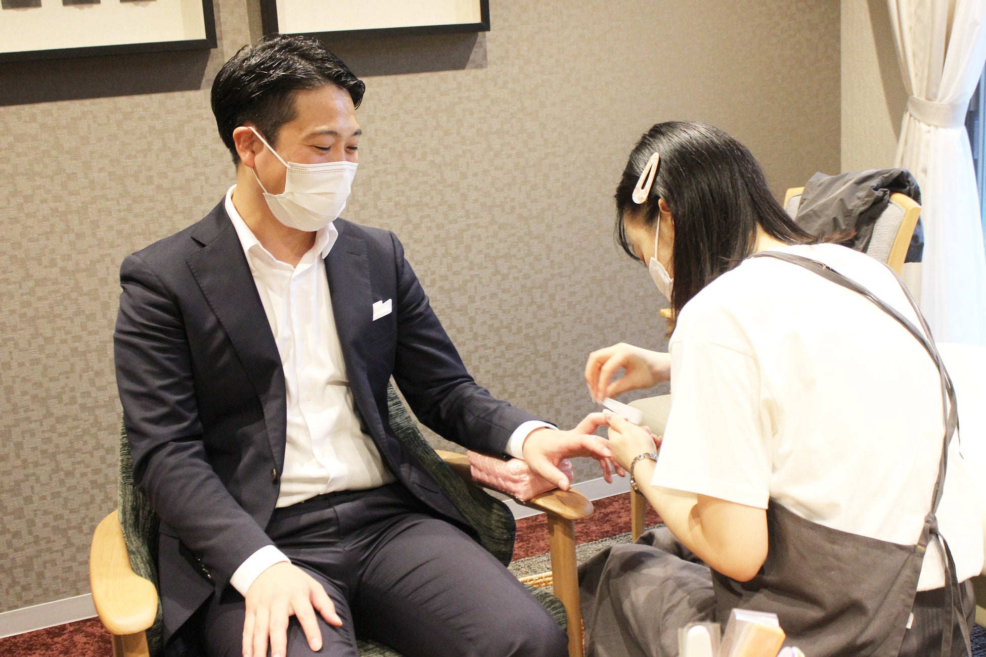 高齢者にとって移動は私たちの想像以上にハードルが高いことが多く、そういった課題は、施設の入居者以外の、地域にお住まいの方にとっても同様だと思います。高齢者社会である日本において、ヘアカットやネイルなど生活に必要なサービスが近所に来てくれるということは、とても需要があることです。今回、私自身、初めてメンズネイルケアを体験してみて、とてもおもしろいなと感じました。また多くの方に楽しんでいただけるようなイベントを企画したいと思います。