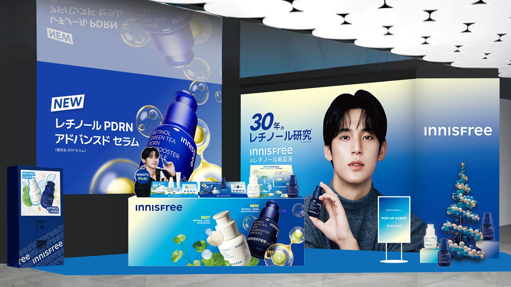 アモーレパシフィックジャパン株式会社(本社:東京都渋⾕区)が展開する美の島由来の⾃然主義アクティブスキンケアブランド[INNISFREE | イニスフリー] は、12月4日(水)~12月10日(火)までの7日間、 @cosme OSAKAにてPOP UPを開催いたします。グローバルアンバサダーMINGYUの特大パネルが目立つ空間では、ここだけの特典をご用意。ぜひイニスフリーとレチノールの世界をご体験ください。