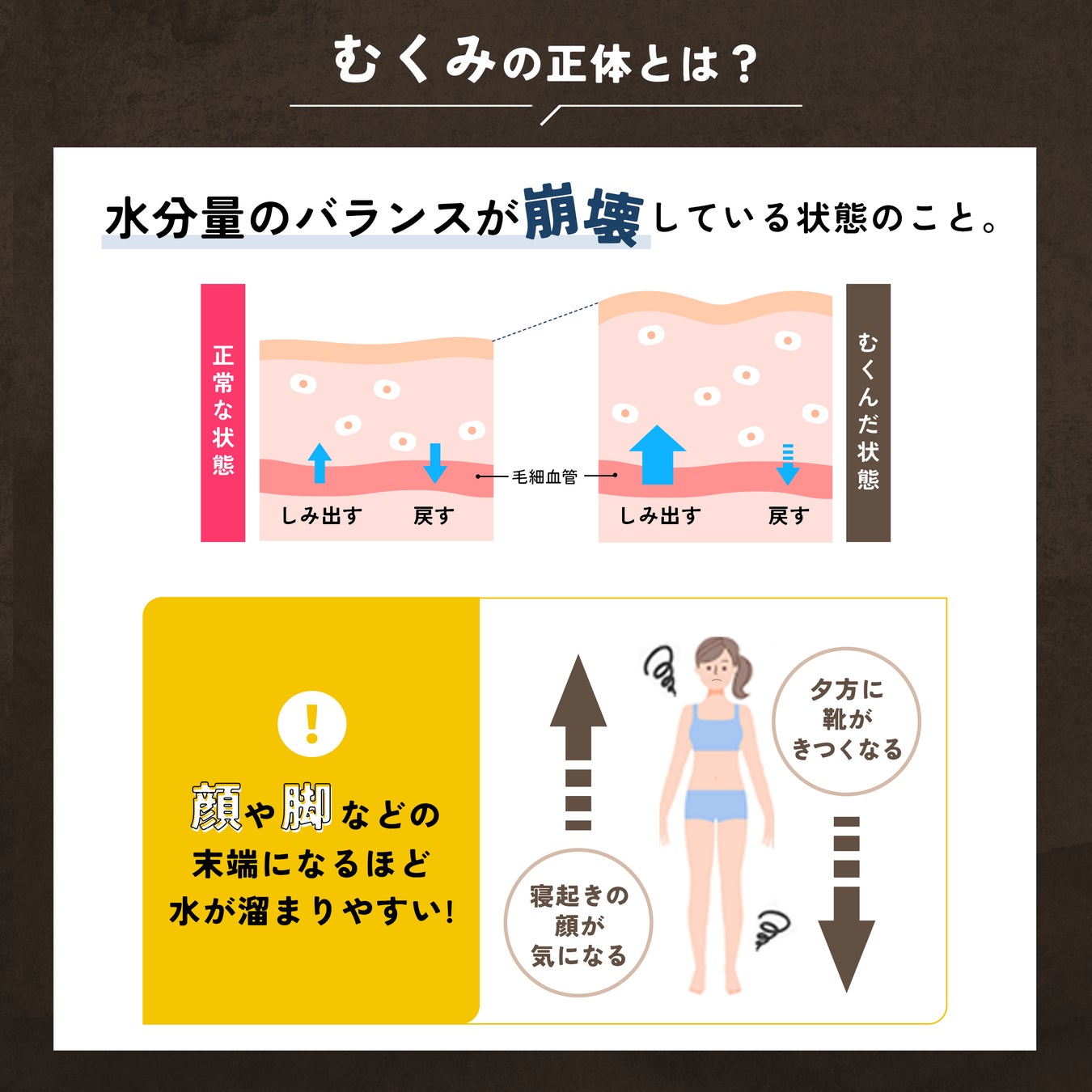むくみの正体とは「水分量のバランスが崩壊している」状態のこと。