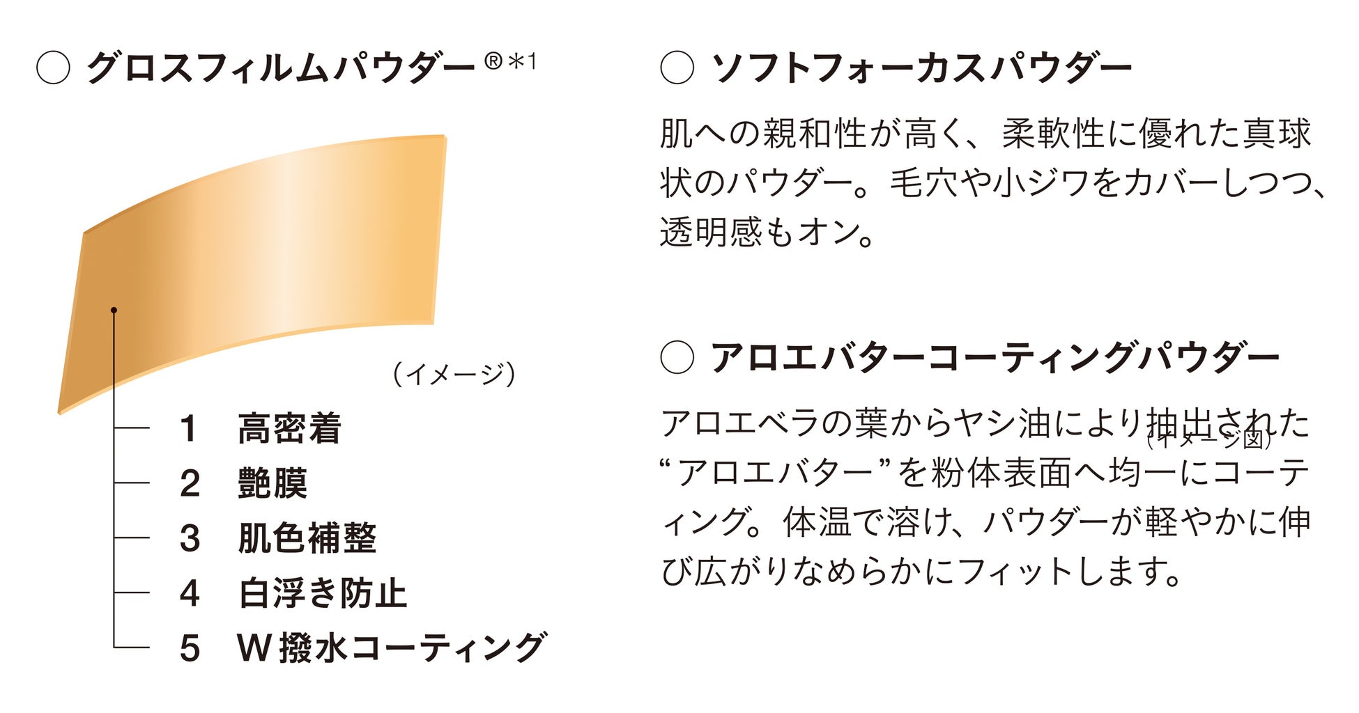 *1 ビスジグリセリルポリアシルアジペート-2<エモリエント成分> *2 (HDI/トリメチロールヘキシルラクトン)クロスポリマー、シリカ<メイクアップ成分>