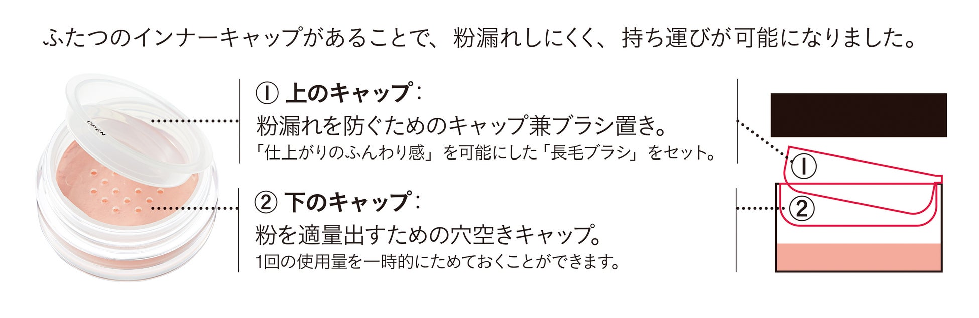 ルースタイプで持ち運びを可能にした「ダブルインナーキャップ方式」