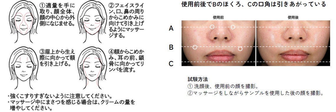 ※1 伸びるクリームでマッサージすること ※2 マッサージ効果による ※3 乳酸桿菌発酵液