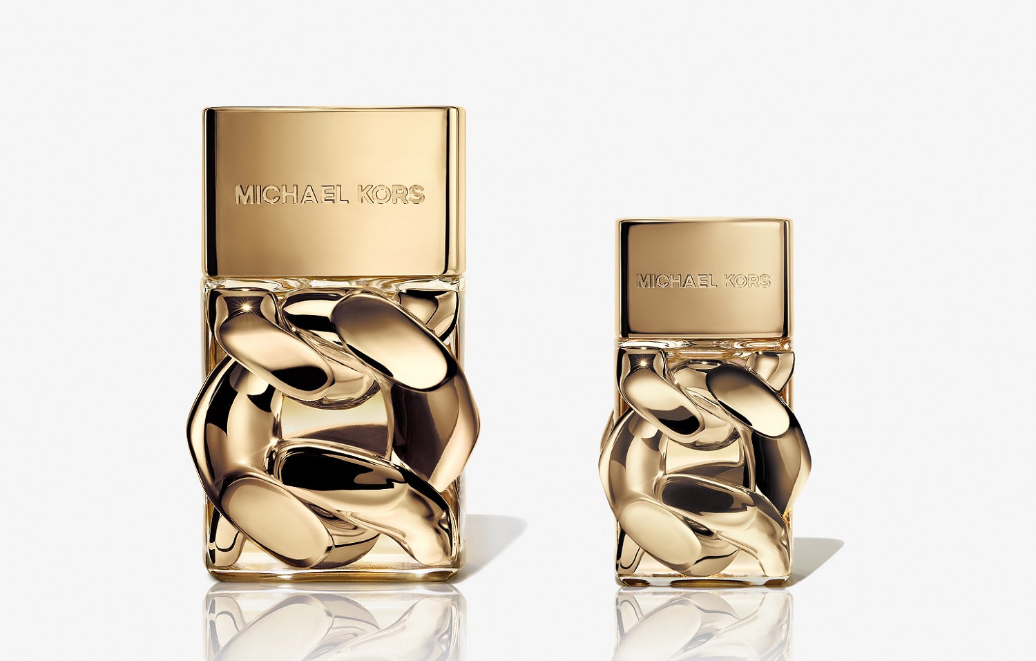 この2つのフレグランスは、マイケル・コースの特徴的なデザイン要素のひとつであるチェーンリンクのボトルに収められており、洗練された女性と男性の多面的な魅力を捉え、引き立てます。