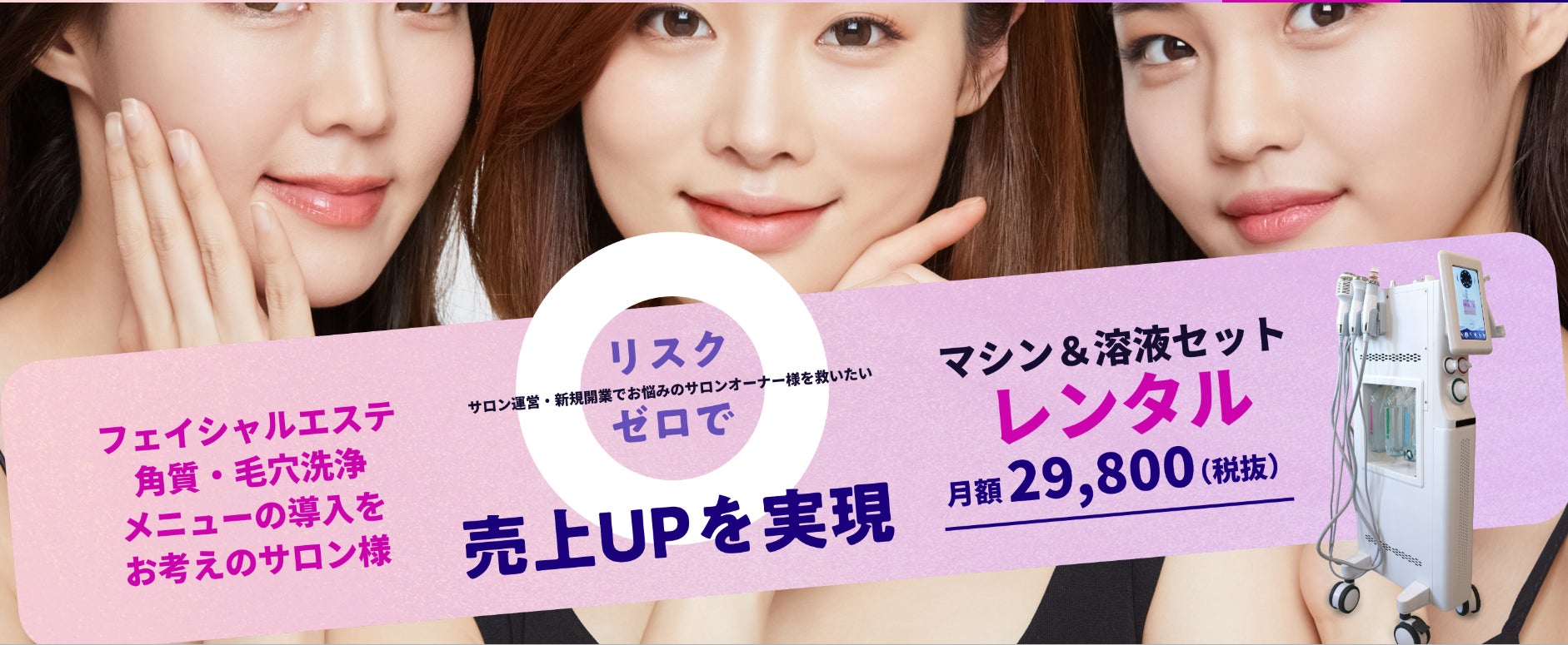 また、サロン様は高額美容機器の投資分を回収するまでに時間がかかり、忙しいのに利益が残らないという状況になります。弊社は「一期一会」「ご縁」を大切にし、開業支援事業としてどこよりも満足のいくサービスを提供したい!という思いから今回のサブスクサービスはスタートしています! 導入店舗様には直ぐに利益を出してもらい、サロン経営を活性化を目指します。導入後のサポート(集客支援・スキルアップ講習等)にも力を入れて共に成長していきます。