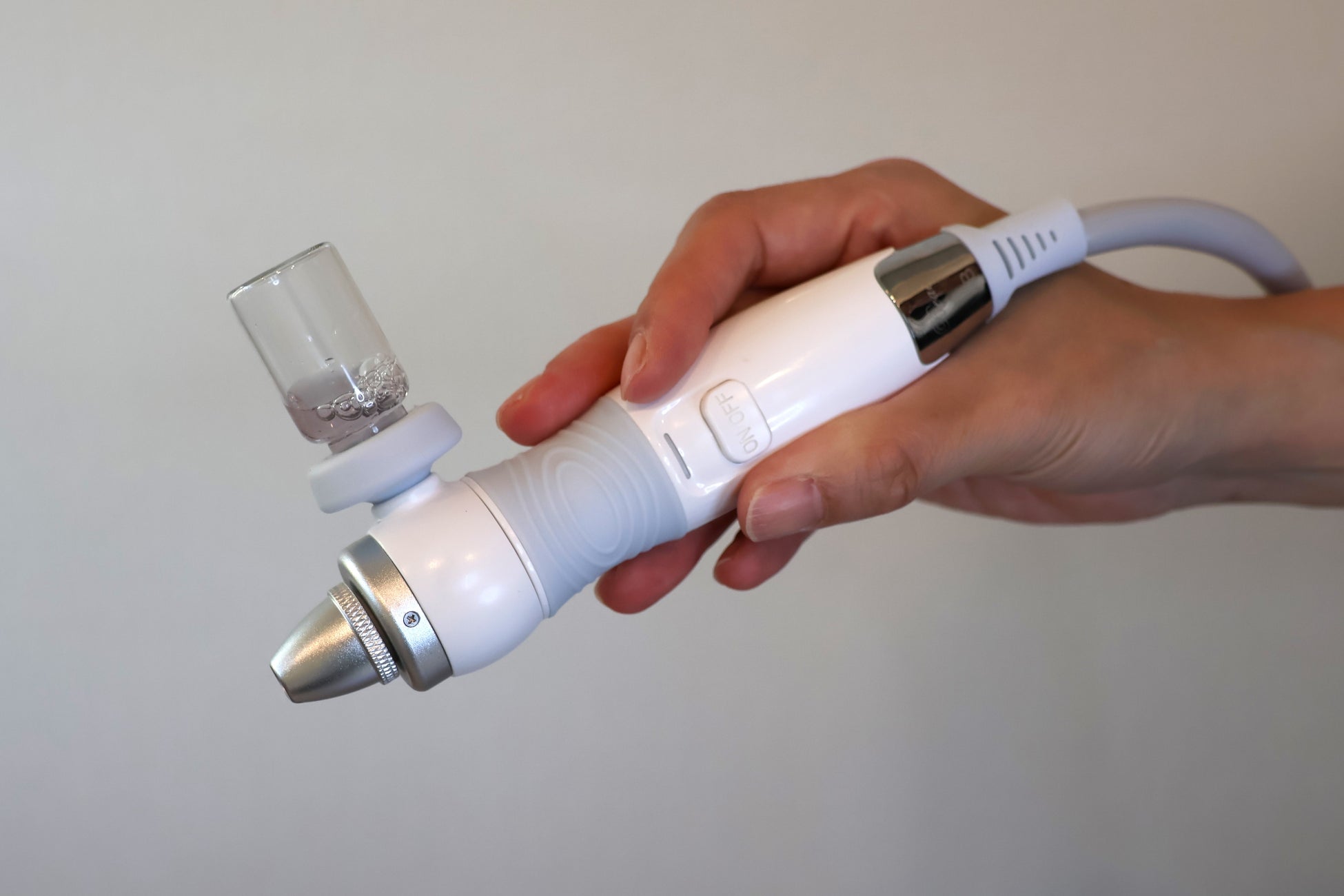同時に吸引も行い剥がれた古い角質を吸い取ります。