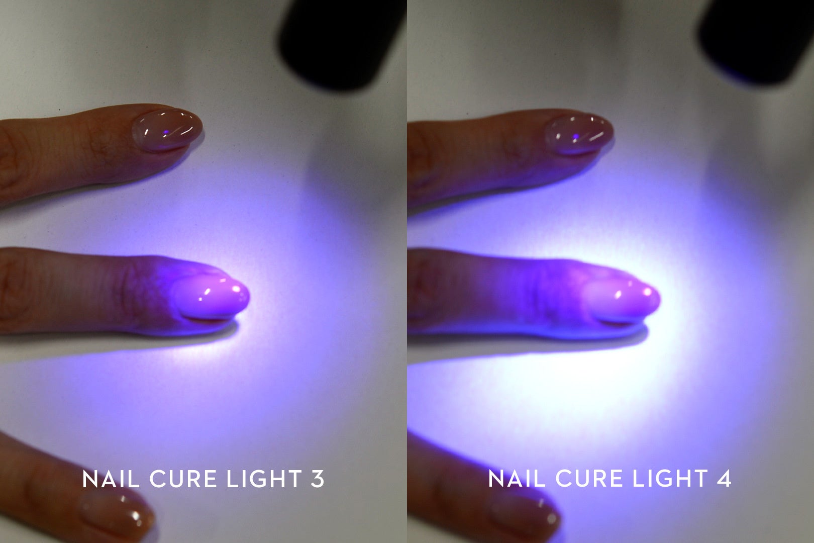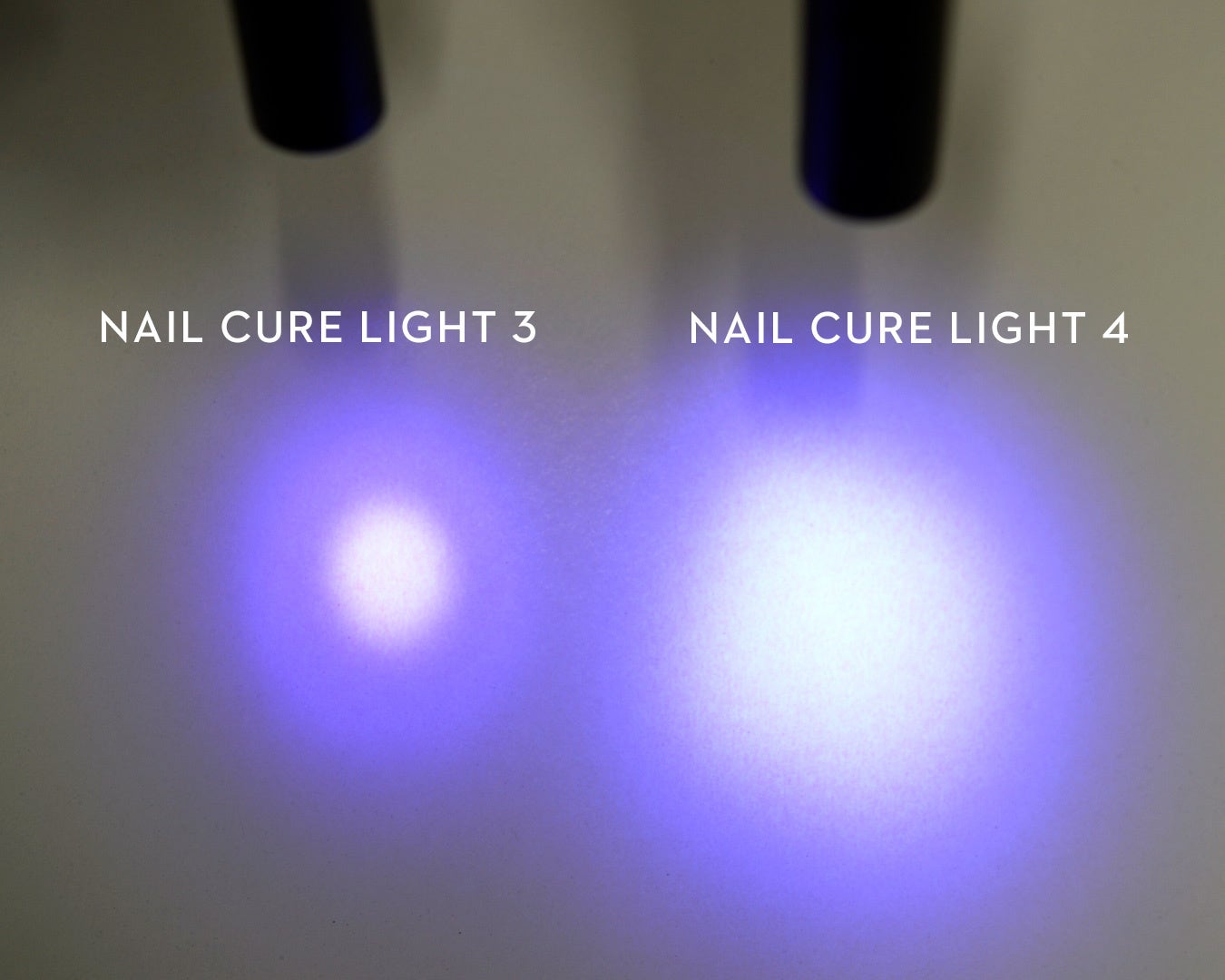 ネイルキュアライト4は照射域が広くなり、光の当たりにくい爪のサイド側などもしっかり硬化してくれます。