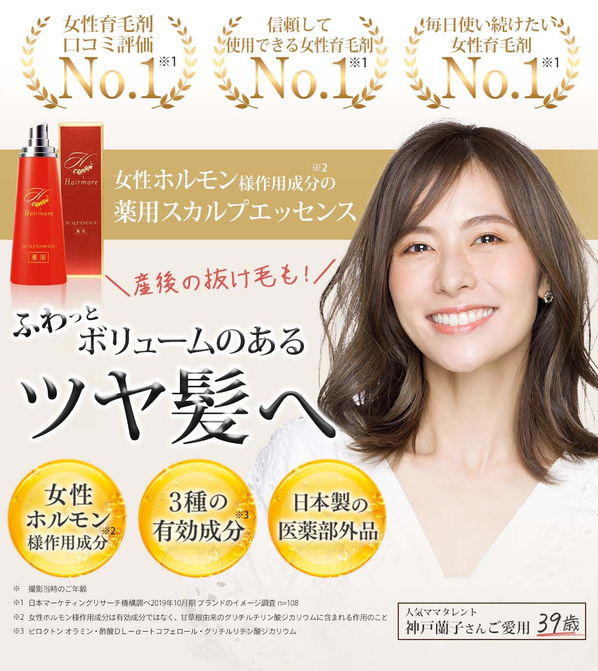 ヘアモアは産後脱毛や、薄毛に悩む女性に特化して作られた「女性用育毛剤」です。