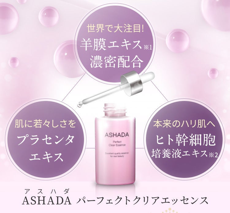 ASHADAシリーズすべての製品は“羊膜エキス”が配合されています。“羊膜エキス”にはプラセンタの約100倍もの成長因子が含まれており、さらにハーバード大学で発見された世界初の若返り因子「GDF-11」が含まれています。そのため本来持つ自ら美しくなろうとする「力」を呼び覚ますことができます。