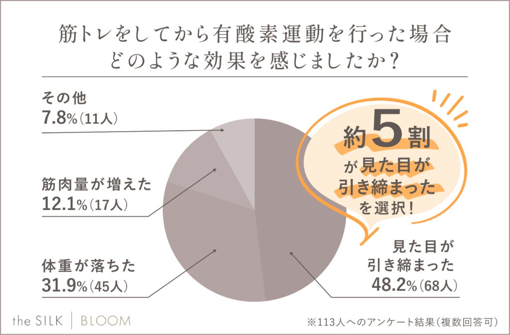 実際に筋トレ後に有酸素運動を行った際の効果を調査したところ、半数が「見た目が引き締まった」と回答しました。