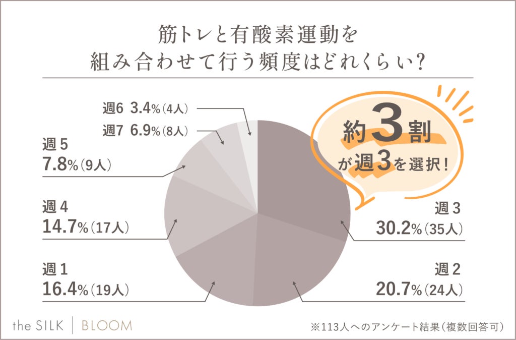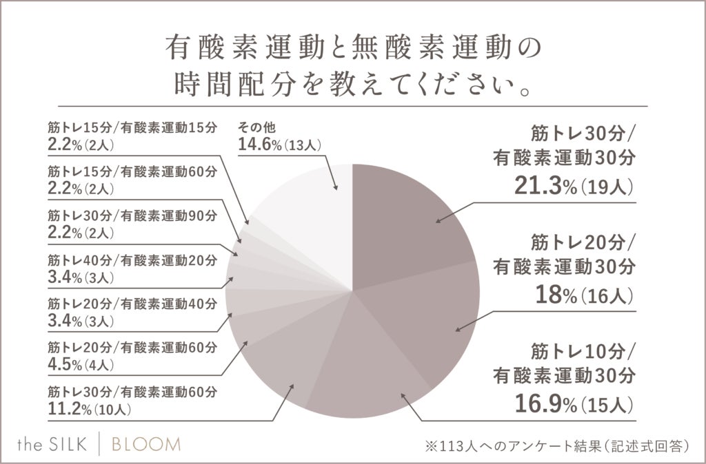 有酸素運動と筋トレの効果的な時間配分について、女性113名にアンケートを行いました。