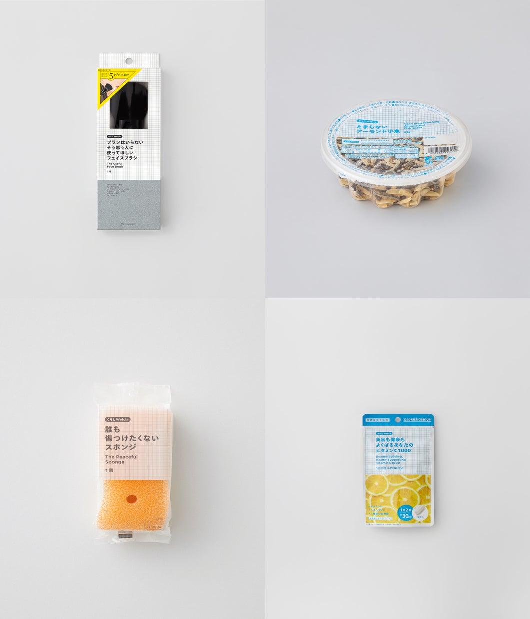 「からだWelcia・くらしWelcia」は、ヘルスケア・ビューティケア・食品・日用品の4カテゴリ、270以上(2023年12月時点)の商品を展開しています。それぞれの商品を一目見て、「これが何か」が分かるよう商品名にもこだわり、「誰も傷つけたくないスポンジ」「ぬり心地が心地いいオーガニックリップ」など、一番の特徴を表し、お客様に伝えたいことを明確化しています。