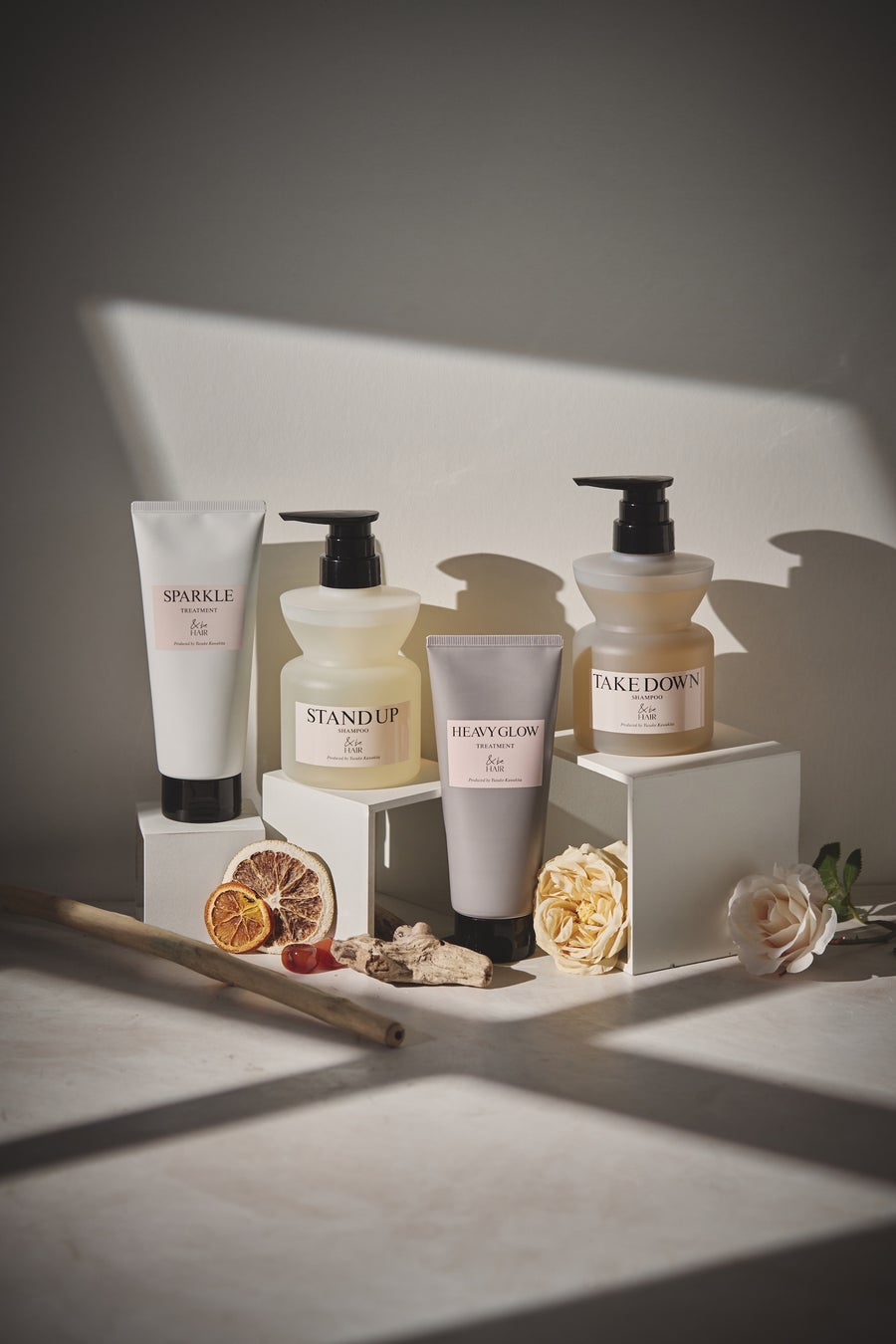 <&be>のヘアケアラインとして今年4月にデビュー。長年、美容業界の第一線で活躍するヘアメイクアップアーティストの河北裕介が理想とする“健康で根元からいきいきとした髪”を目指すために、その時々の髪の状態に合わせてカスタマイズできるラインナップを展開しています。植物由来成分と化学由来成分のそれぞれが持つ長所を活かしたハイブリッド処方が特徴。