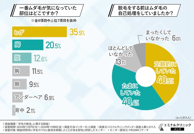 脱毛をする前に気になるムダ毛を自己処理していた男子学生は8割以上という結果になりました。